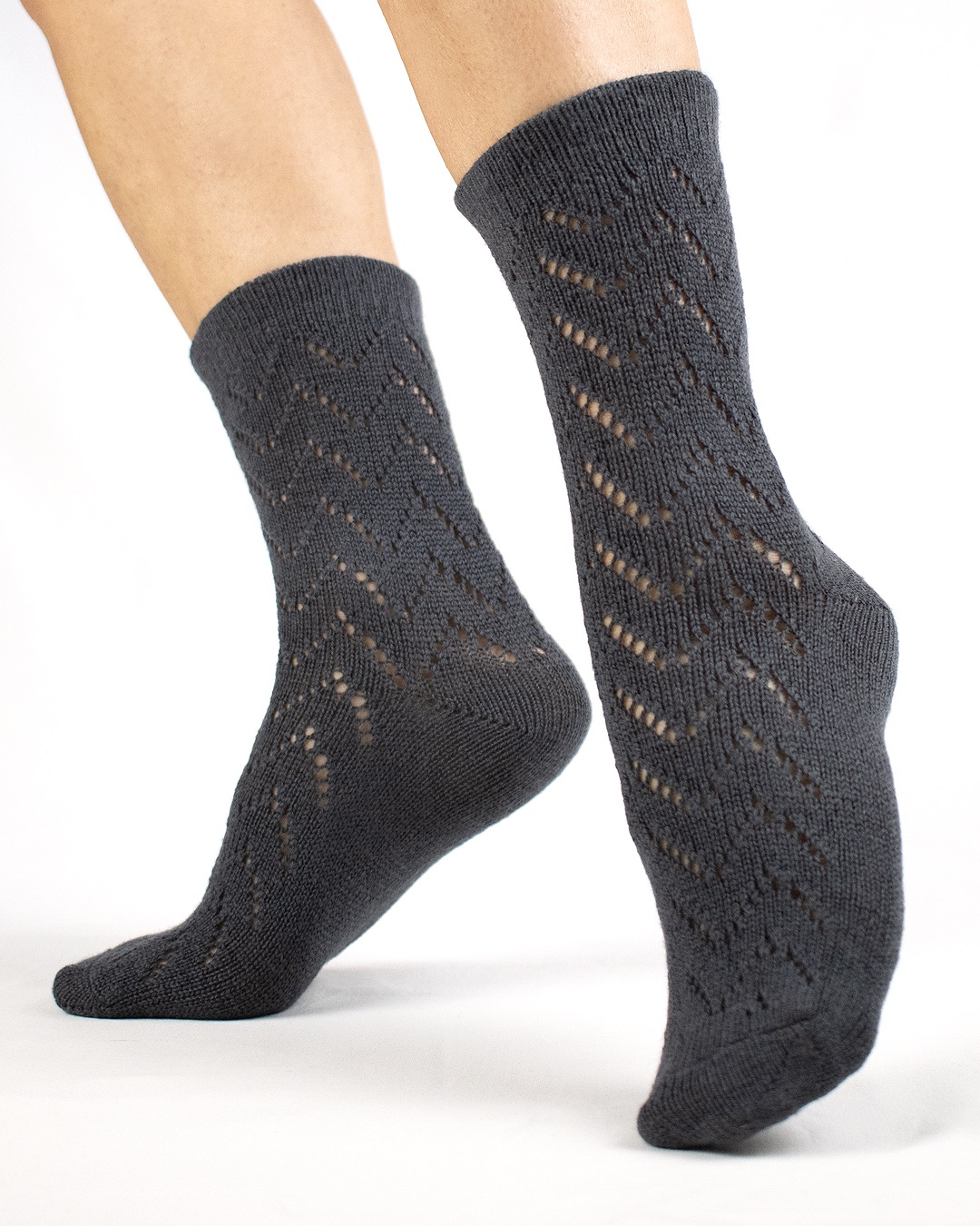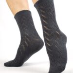La Calza Dalia, calza corta traforata con motivo a spiga, 100% Lana Merinos Extra Fine. Un’espressione di eleganza sobria, che unisce morbidezza e raffinatezza in un design intramontabile. Punta e tallone rinforzati con doppio filo per una resistenza duratura. Il polso elastico a costa sottile avvolge delicatamente la caviglia, assicurando comfort e stabilità. Ideale per completare look sofisticati, mantenendo i piedi caldi e asciutti con un tocco di stile ricercato.